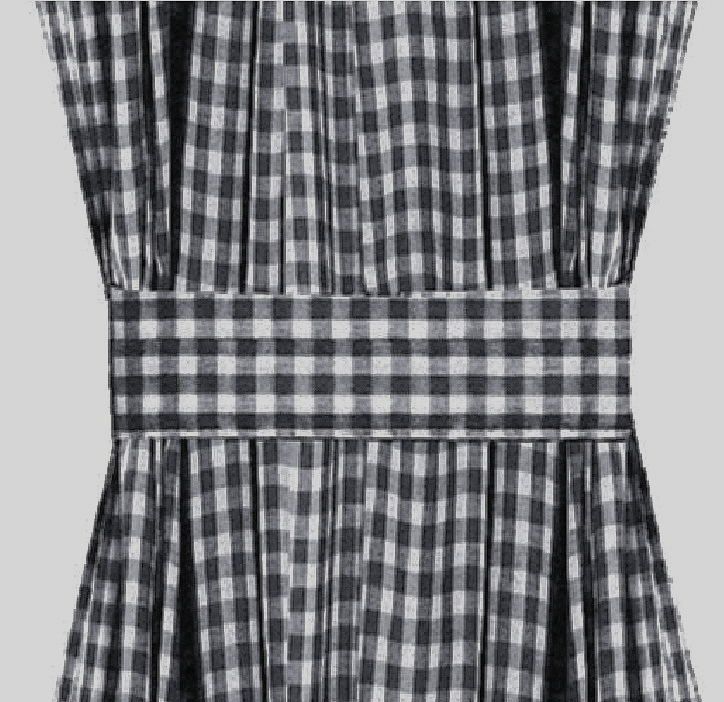 1/4 inch gingham check in easy care, light weight poly/cotton blend. 1" header and footer with 1.5 inch top and bottom pocket. Please measure length for correct fit. Length is measured from top of top rod to bottom of bottom rod. Panels measure approximately 40" wide each. Pair Price is for 2 panels and 2 Velcro tiebacks.