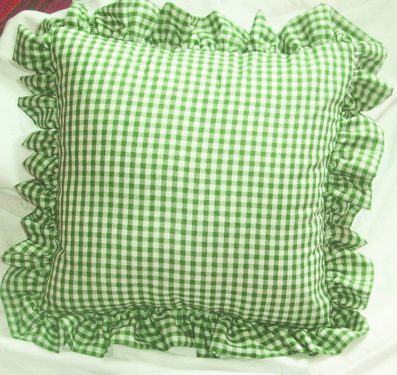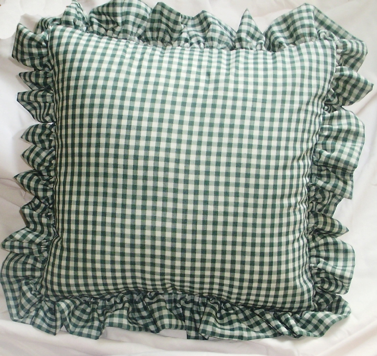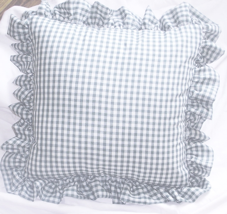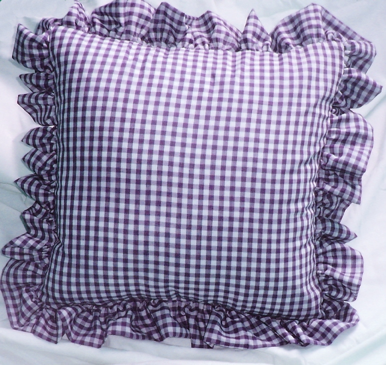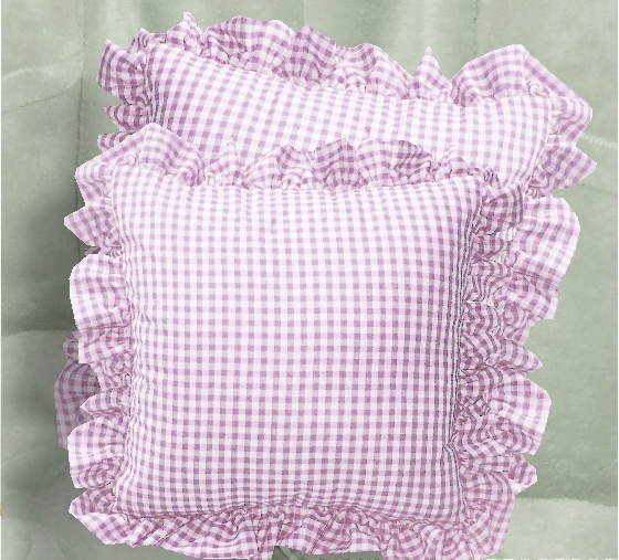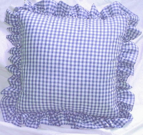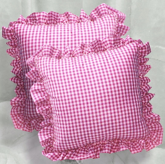 Comfy ruffled gingham check throw pillows available in 16 colors and 2 sizes. Measures 16x16 or 18x18 without the 2-3" ruffled edge. Constructed of easy care poly/cotton fabric and soft polyester fill. Removable cover for easy cleaning.
