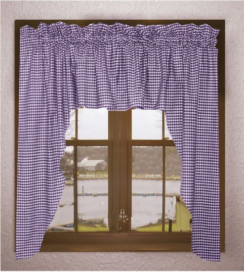 Pretty gingham check swag valance that Includes left and right sides that measure about 40 inches wide and 14" drop in the middle with option of 36 to 52 inches on the longest side. Length ordered is total length including the pocket and header (top ruffle). Available with or without white lining.