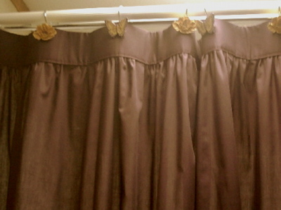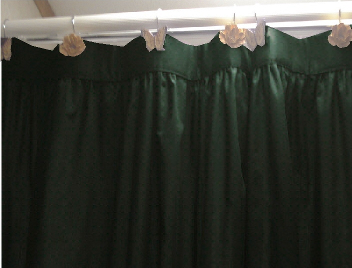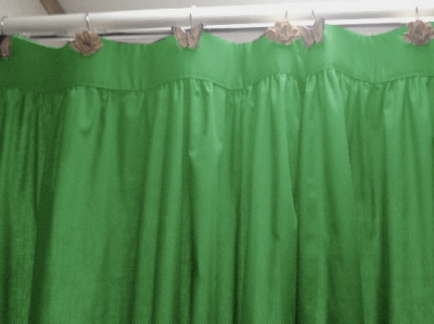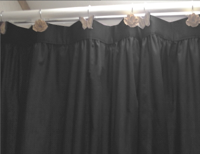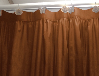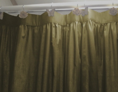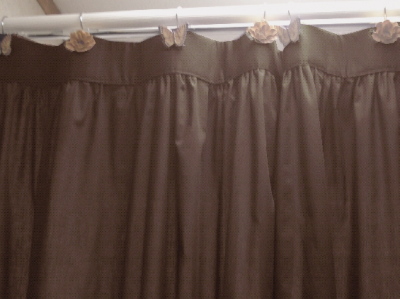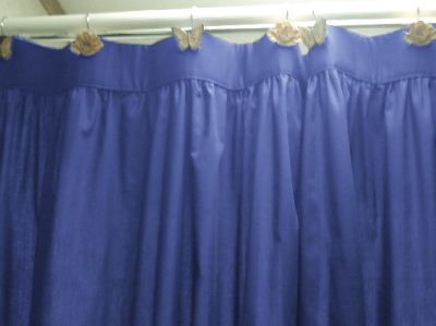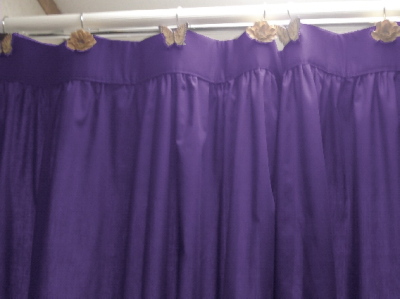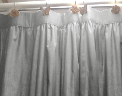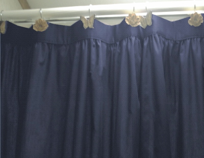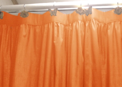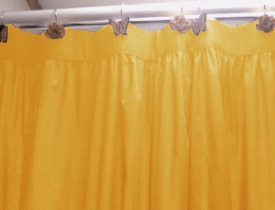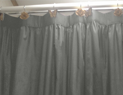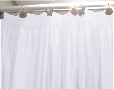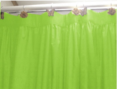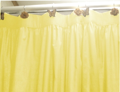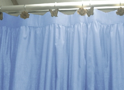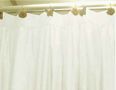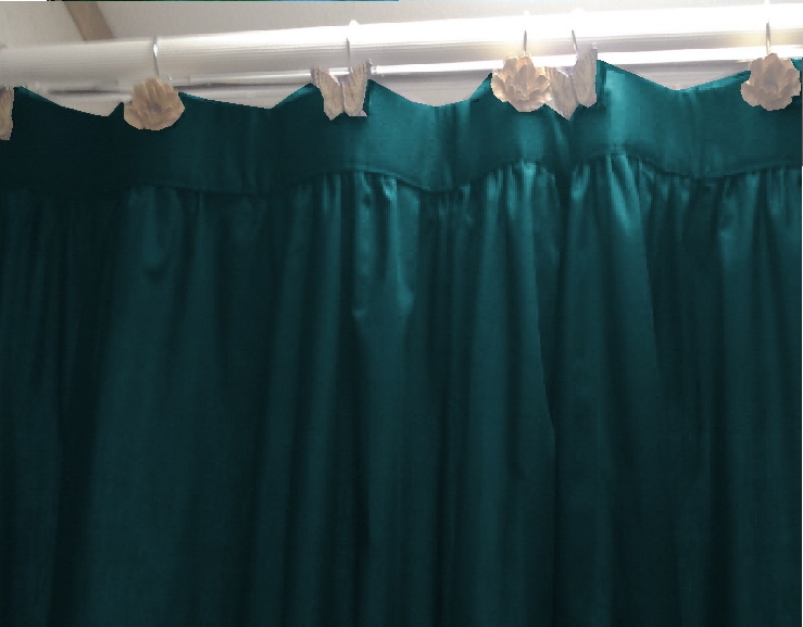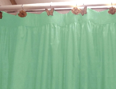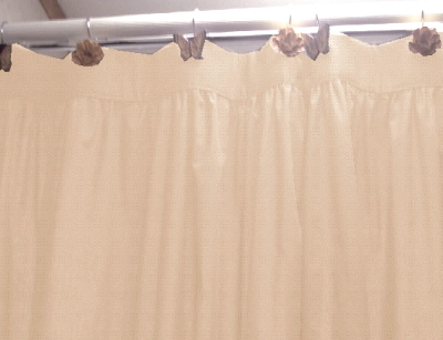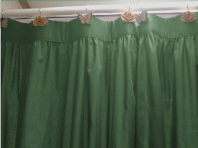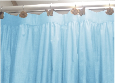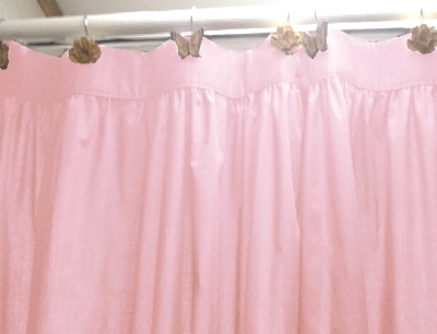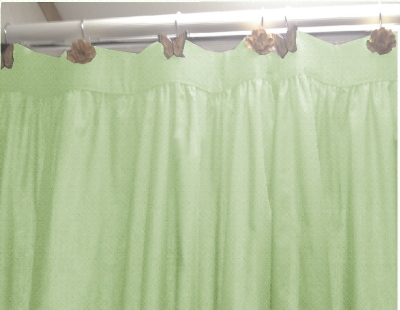 This pretty solid colored Shower Curtain features a simple, solid cotton appearance with slight curtain-like gather and 12 reinforced buttonholes across the top to accept hooks.