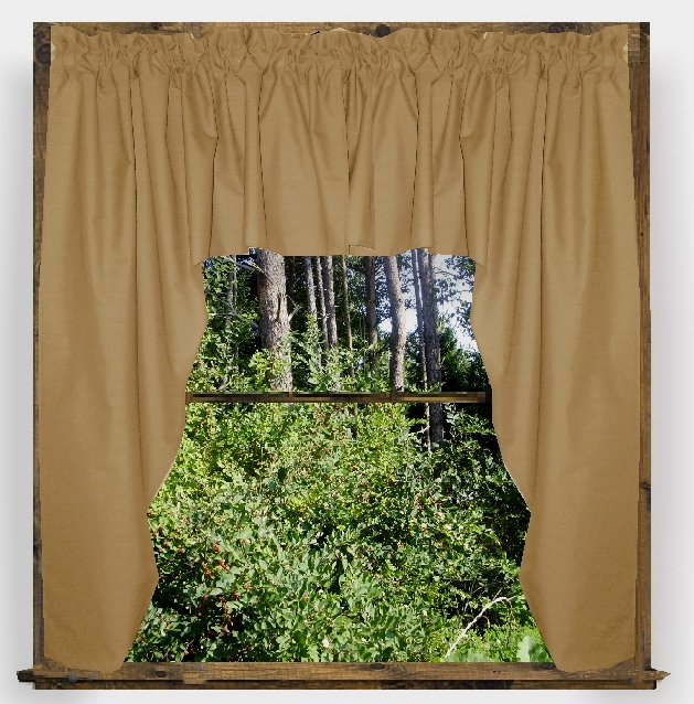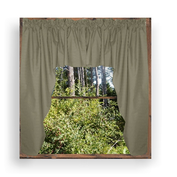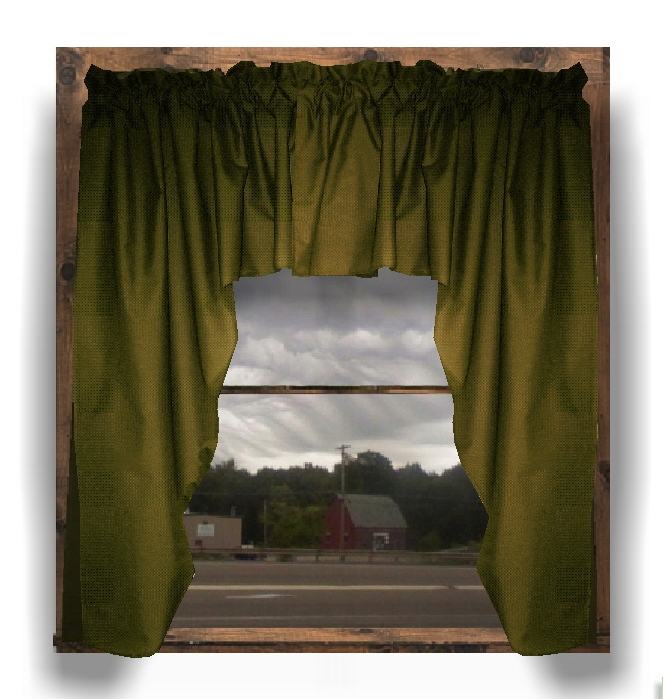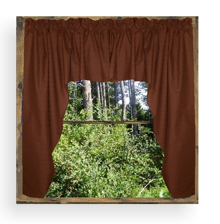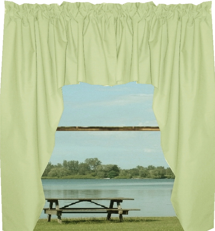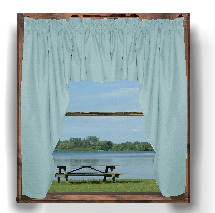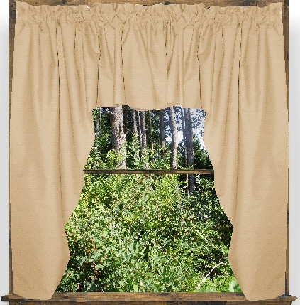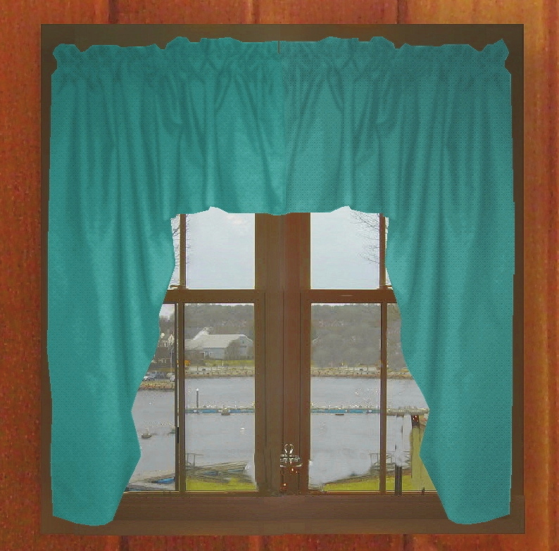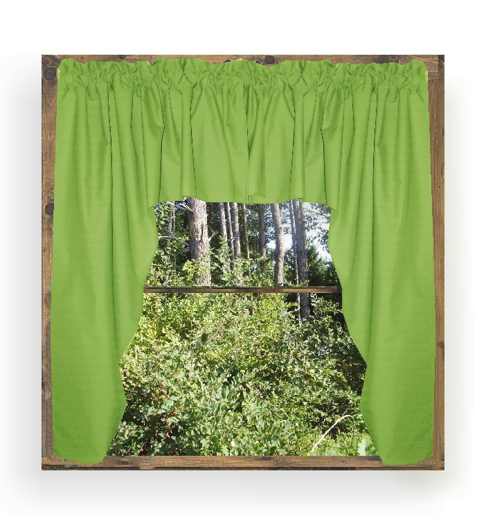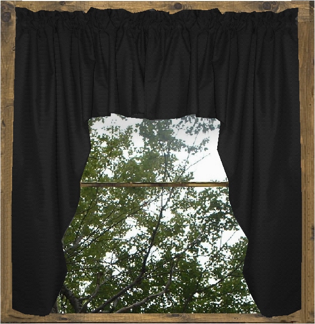 Solid colored swag window Valance available multiple colors. Constructed of perma-press poly/cotton fabric with or without lining. Pair includes right and left pieces with total width about 74" wide. Long side lengths vary and short center length is about 14 inches. Fits windows up for 40" wide. Order extra center for wider windows. Extra Center Piece measures 40" wide and about 14" long.